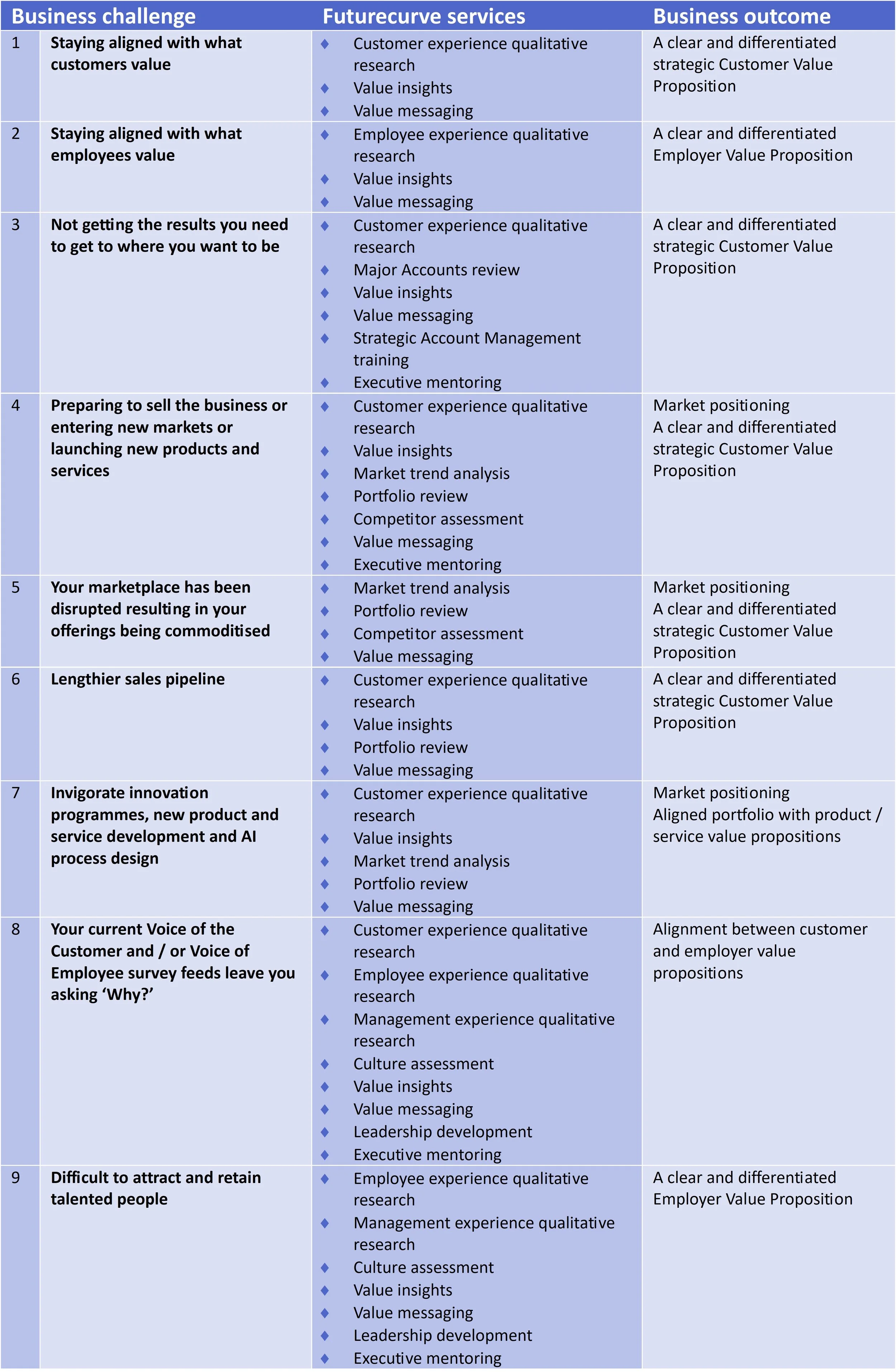 Client business challenges and Futurecurve services